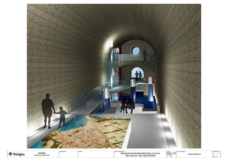 El visitant s’endinsarà al conjunt de la Volta del Pallol de la mà d’un personatge d’època, amb la intencionalitat de que el primer s’identifiqui amb el personatge històric i que, a la vegada, pugui veure, viure.. (efectes sonors, visuals...) el que deuria copsar el personatge històric durant el segle II dC. Tot el discurs gira cap un element principal: la maqueta reconstructiva de la ciutat romana de Tarragona que es troba en exposició en l’Antiga Audiència.