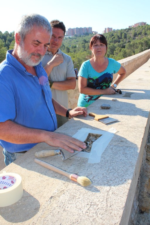 Aquest matí s’ha procedit a aplicar un nou tipus de morter per a la conservació del Pont del Diable, per fer reposar unes peces que amaguen els visos de fixació de la barana superior de l’aqüeducte. BASF Construction Chemicals aporta la seva experiència en l'aqüeducte amb la col·locació del morter MasterEmaco N 5200. La col·locació la fa personal del Pla d’Ocupació sota la direcció de personal municipal.
