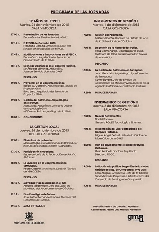 Amb motiu dels 12 anys del Plan Especial de Protección del Conjunto Histórico (PEPCH) de Còrdova, la ciutat andalusa ha organitzat unes jornades de reflexió a l’entorn de la gestió i conservació del patrimoni que tindran lloc els dies 24 i 26 de novembre i 1 i 3 de desembre de desembre i en les quals la ciutat de Tarragona hi serà present.
