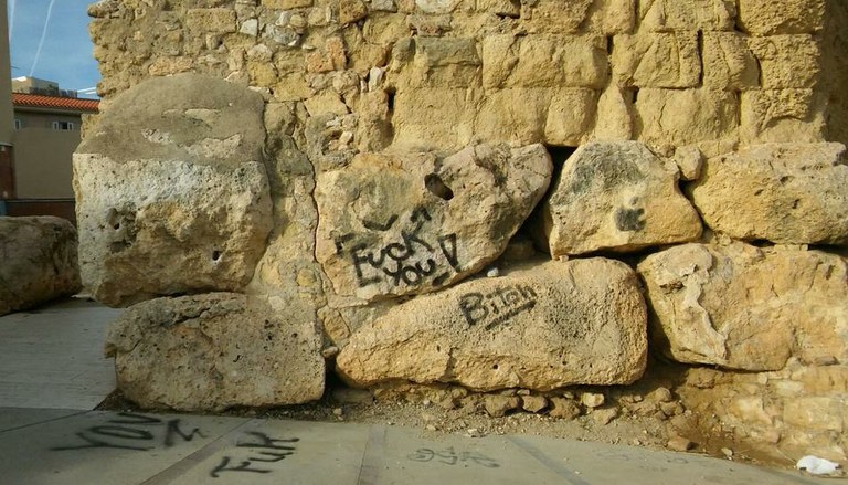 La Conselleria de Patrimoni lamenta el nou episodi d'incivisme que ha patit a les darreres hores les Muralles romanes de la ciutat.