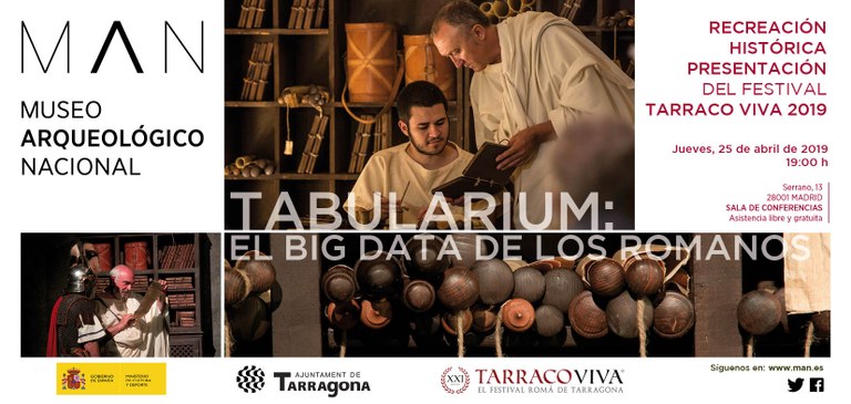El dijous 25 d’abril, el Festival Tarraco Viva es presenta a Madrid al Museo Arqueológico Nacional amb una recreació històrica produïda pel festival i protagonitzada per l’Associació Projecte Phoenix, «Tabularium: el Big Data de los romanos». L'acte de presentació, obert tant a periodistes especialitzats com a públic general, se celebrarà el dijous, a les 19 h, a la sala d’actes del MAN.
