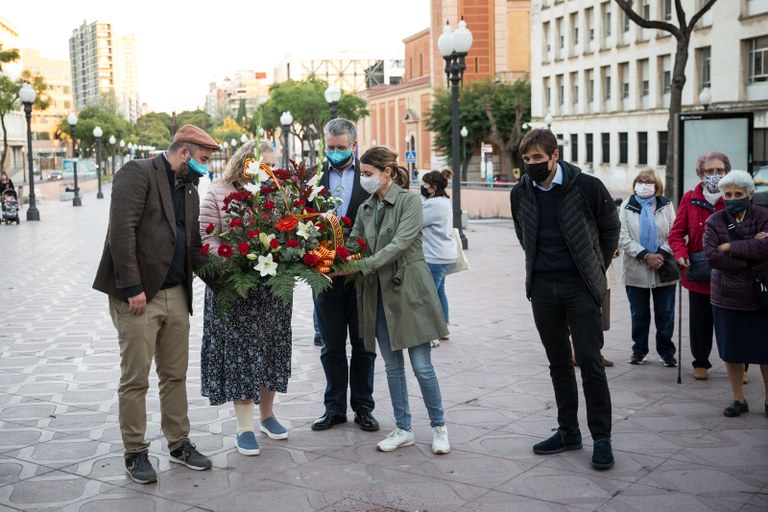 Ofrena floral a l'estàtua de Lluís Companys en el 80è aniversari del seu afusellament