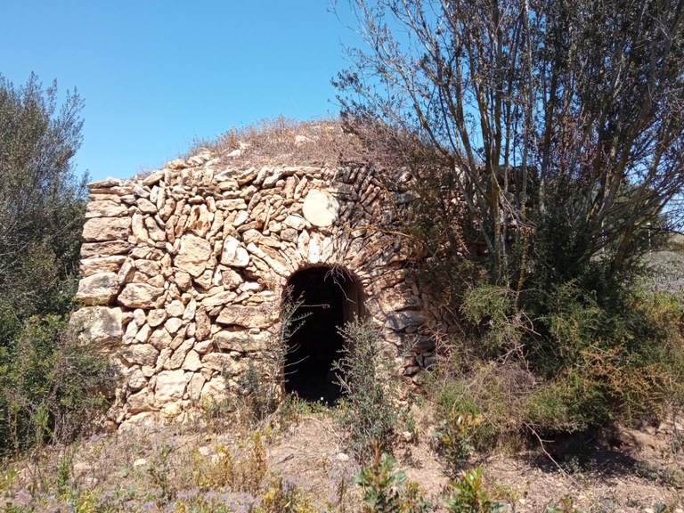 Durant les jornades pràctiques, es desenvoluparà una cabana amb una volumetria de 1,10 metres d’alçada per 1,6 m de diàmetre amb planta circular amb un gruix de mur de 30 cm i un gruix de volta de 20 cm generant un volum interior de 0,9 m d’altura per 1 metre de diàmetre. Per a la construcció s’utilitzarà la tècnica tradicional de construcció de pedra en sec protegida per la UNESCO al 2018 utilitzant un únic material, en aquest cas pedra calcària de la cantera de Maspujols.