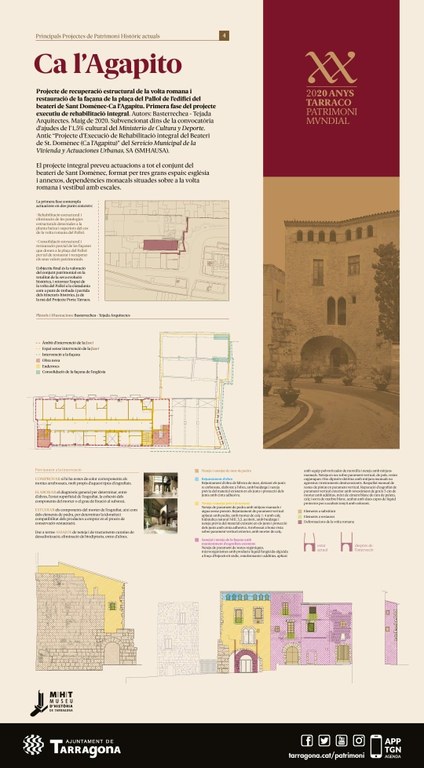 Aquest dimecres s'ha aprovat inicialment la primera fase del projecte executiu de rehabilitació integral del beateri de Sant Domènech, conegut popularment com Ca l’Agapito, que consta de la restauració de la volta romana i de la façana de l’edifici principal. Aquest important projecte, les obres del qual podran iniciar en breu, té una subvenció per part l’1,5% Cultural del Ministeri de Transports, Mobilitat i Agenda Urbana de 759.000,00 € i compta amb 470.000,00 € restants, de l’Ajuntament.