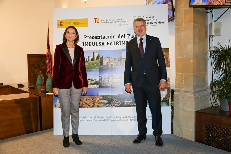 La presentació del pla Impulsa Patrimonio s’ha fet aquest dilluns 22 de novembre a la ciutat Patrimoni de Baeza (Jaén), en un acte que ha comptat amb la presència de la ministra d’Indústria, Comerç i Turisme, Reyes Maroto, i d’alcaldes de les quinze ciutats del Grup. Durant la presentació la ministra Maroto ha desgranat alguns dels detalls del pla, destacant el fet que comptarà amb una subvenció de 45 milions d’euros destinats a les quinze ciutats a través del Pla de Recuperació, Transformació i Resiliència del Govern de l’Estat. La ministra ha explicat també que Impulsa Patrimonio va adreçat a “projectes sostenibles de rehabilitació i manteniment del patrimoni històric i cultural de les Ciutats Patrimoni” i que el pla “permet reforçar l’aposta per un turisme de qualitat, sostenible, digital i inclusiu i potencia la nostra posició de lideratge turístic a nivell mundial”.