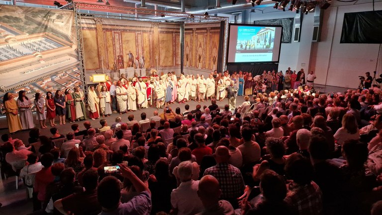 Un gran espectacle de recreació històrica a càrrec dels grups de reconstrucció Projecte Phoenix i Thaleia ha servit, aquest diumenge a la tarda, per posar el punt i final a la 25a edició de Tarraco Viva. Després d’una representació sobre com eren les reunions anuals dels Concilium de la Hispània Citerior a la capital, Tàrraco, Magí Seritjol, ha agraït a participants i col·laboradors, sobretot “per la seva entrega i l’esperit de col·laboració, sense els quals no es podria oferir una programació tan àmplia”.