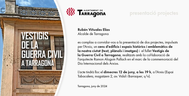 L’Ajuntament de Tarragona, a través del Servei d’Arxiu i Documentació Municipal, se suma a la celebració del Dia Internacional dels Arxius, que correspon al 9 de juny, amb la presentació de dos projectes dedicats a la preservació i difusió de la memòria històrica i el patrimoni documental, cultural i arquitectònic. La presentació es farà demà dimecres 12 de juny a les 19h a la seu de l’Arxiu.