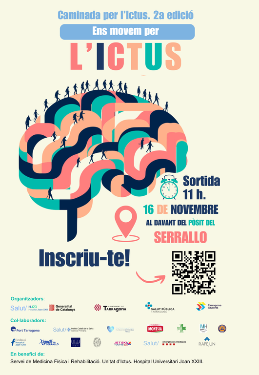 Sota el lema Caminem junts per l'ictus, Tarragona acollirà la primera caminada per conscienciar sobre l'ictus, una iniciativa de la conselleria de Salut Pública de l'Ajuntament de Tarragona i la Unitat de l’Ictus del Servei de Neurologia de l’Hospital Universitari Joan XXIII que se celebrarà el dissabte 16 de novembre.