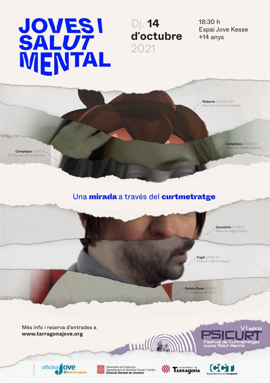 Per la tarda a l’Espai Jove Kesse a les 18.30 h, es realitzarà una sessió de curtmetratges i taula rodona sobre joves i salut mental. Els projectes audiovisuals seleccionats per l'organització del festival Psicurt pretenen visibilitzar, conscienciar i tractar l'estigma relacionat amb els problemes de salut mental a través del cinema. És per aquest motiu que es projectaran un total de sis curts, alguns dels quals han estat preseleccionats en edicions anteriors dels Premis Goya i també han estat projectats en diferents festivals en l'àmbit nacional i internacional: Cómplices, de Rubén Guindo, Cocodrilo, de Jorge Yúdice, Roberto, de Carmen Córdoba, Fugit, de Marta Bayarri, Complejos, de l'IES Europa de Ponferrada i Ruleta rusa, de l'IES Rodanas de Épila.
