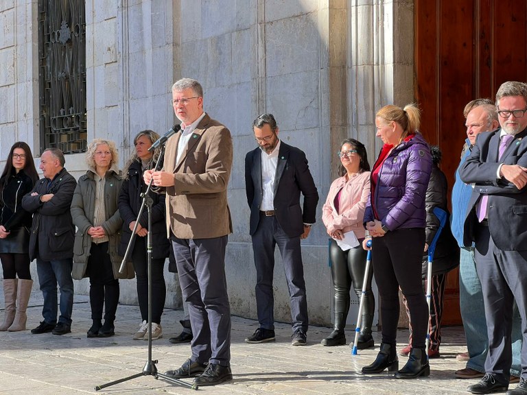 Aquest divendres al matí ha tingut lloc la lectura del manifest institucional i de la "Crida de les persones amb càncer a la societat" a les portes del Palau Municipal amb motiu del Dia Internacional contra el Càncer, que se celebra aquest dissabte.