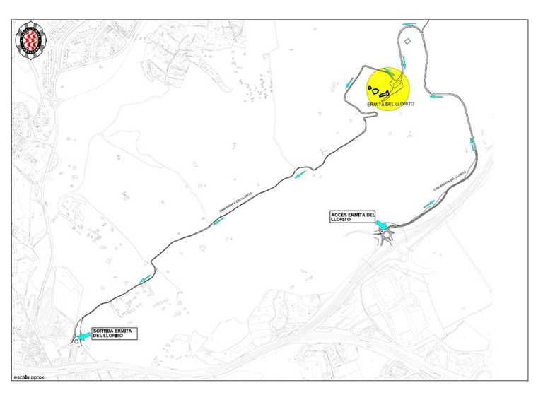 - La pujada a l’ermita s’haurà de fer per la carretera del Llorito, a la qual s’accedeix des de l’A7 i que és coneguda com la carretera nova.