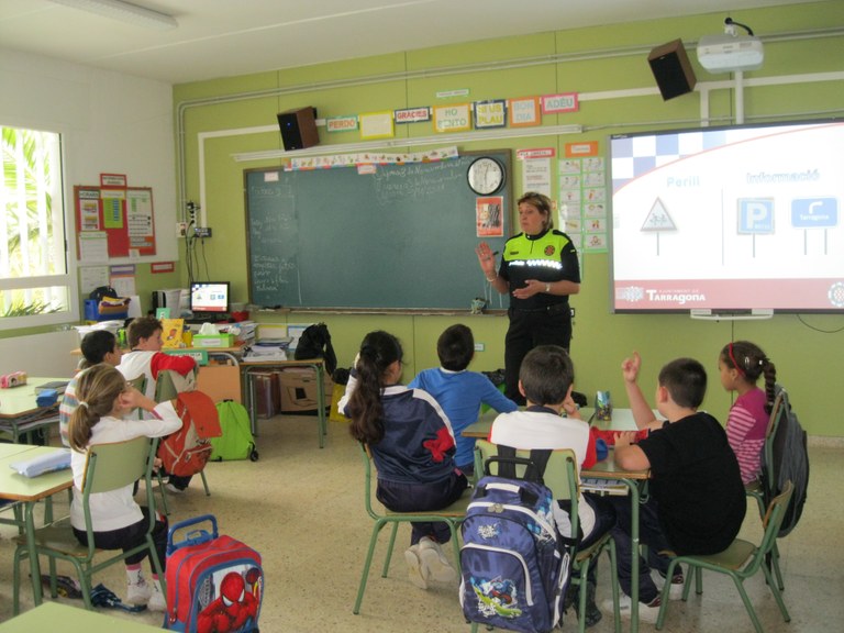 Els alumnes agraeixen la tasca dels agents després de la primera sessió d'educació viària