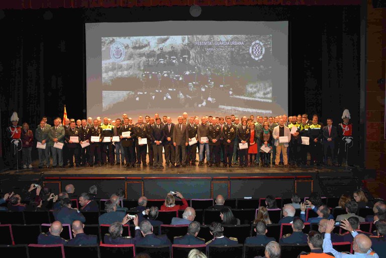 La Guàrdia Urbana de Tarragona ha celebrat aquest migdia, amb motiu del seu 161è aniversari, l'acte de la festivitat del cos, durant el qual s'ha reconegut la tasca dels agents més veterans i s'han lliurat les medalles i felicitacions als policies que han realitzat actuacions policials destacades durant l'últim any. L'acte, que ha tingut lloc al Teatre Tarragona, ha estat presidit per l'alcalde de la ciutat, Josep Fèlix Ballesteros, i ha comptat amb la presència del subdelegat del Govern, Joan Sabaté, i del director general d'Administració de Seguretat de la Generalitat, Jordi Jardí, entre d'altres autoritats, a més de representants de tots els cossos policials.