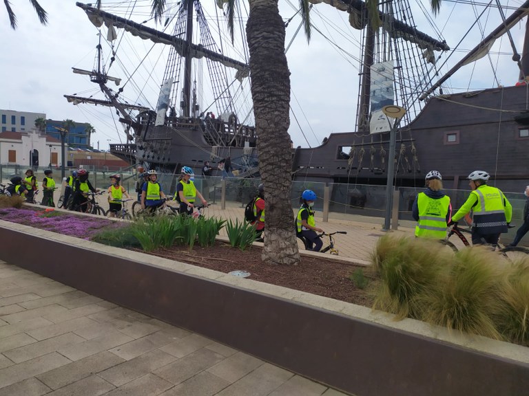 Aquesta iniciativa va sorgir del diàleg entre els agents encarregats del programa i els docents de diferents centres de la ciutat, que van veure que l'organització de petites sortides amb bicicleta amb els alumnes permetia que els infants coneguessin de primera mà les normatives i el comportament del trànsit rodat. Per ara ja s’han fet dues sortides d’aquestes característiques, i es preveu que se’n puguin organitzar més en el futur.