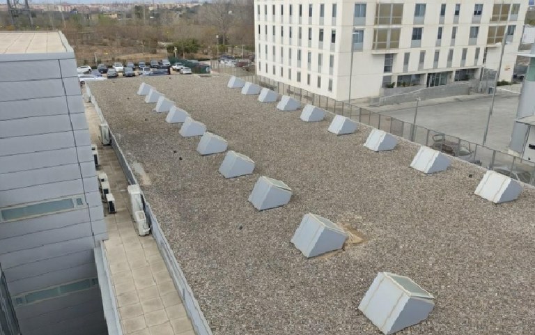 Un tipus de coberta està acabat amb paviment flotant a base de lloses de formigó porós amb aïllament tèrmic i l’altre està acabat amb graves, que són totalment permeables, que és on cal intervenir, ja que s’han registrat diversos punts de filtració. I tot i que la coberta preveu dues canals de recollida d’aigua de la pluja, no és suficient en episodis de fortes pluges i això ha fet que apareguessin les filtracions.