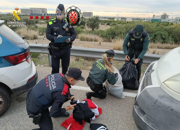 Durant el transcurs del dispositiu es va interceptar un vehicle i es va procedir al registre de l’interior on es van localitzar una gran quantitat de peces de roba de marques esportives conegudes i altres articles que van resultar ser falsificats. En total es van comptabilitzar 509 elements (roba i altres objectes) preparats per a la venda, amb un valor estimat de 32.830 euros.
