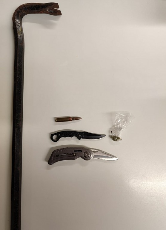 En l'escorcoll efectuat en el vehicle, els agents han localitzat i intervingut dues armes blanques, un projectil de calibre 7,62 d'una arma de guerra i diversos grams de marihuana.