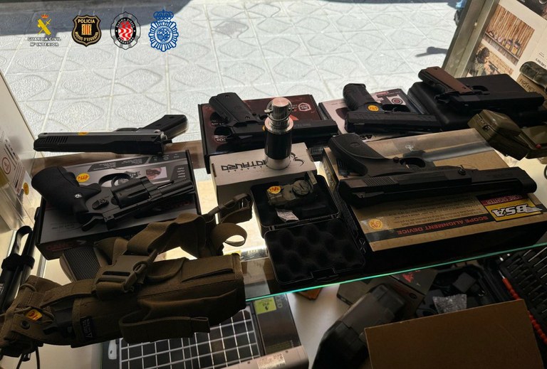 Finalment, la Guàrdia Civil va iniciar els tràmits per comissar el contingut d’una vitrina que contenia diverses armes blanques i rèpliques d’armes de foc reals. En concret, eren 20 armes blanques i 19 armes d'aire comprimit, de les quals 8 eren armes curtes i 11, llargues. Els agents van comprovar que l’establiment no disposava de la corresponent llicència per a la venda d’aquest tipus d’armament i va denunciar els seus responsables per infracció de l’actual Reglament d’Armes.