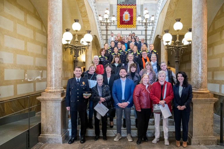 Les agents en actiu i també les jubilades que han assistit a l’acte de recepció i homenatge han rebut un diploma que ha estat entregat per l’Alcalde, la consellera i per l’Intendent Cap de la Guàrdia Urbana i a les que no han pogut venir, se’ls hi farà arribar. La trobada ha acabat amb una foto de família a les escales del consistori.