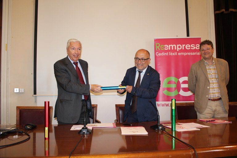 El conseller d’Ocupació i Desenvolupament Econòmic, Francesc Roca, i el president de la patronal Cecot i del Centre de Reempresa de Catalunya, Antoni Abad, han signat un conveni de col·laboració per a la implantació del projecte Reempresa a la nostra ciutat. L’acte ha comptat amb la presència del director del Centre de Reempresa de Catalunya, Albert Colomer.