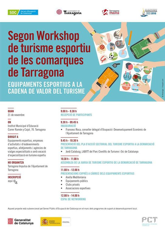 En aquest marc, el proper 21 novembre tindrà lloc el segon workshop de turisme esportiu de les comarques de Tarragona amb el títol "els equipaments esportius a la cadena de valor del turisme". Tal i com estava previst en el primer workshop celebrat el 13 de desembre de 2016, a banda dels equipaments esportius, es dirigirà també a empreses d’activitats i d'esdeveniments esportius i allotjaments i agències de viatge especialitzats o amb vocació d'especialització en turisme esportiu. El wokshop està concebut com una acció encaminada a afavorir vincles de col·laboració entre els membres d'aquesta Xarxa.