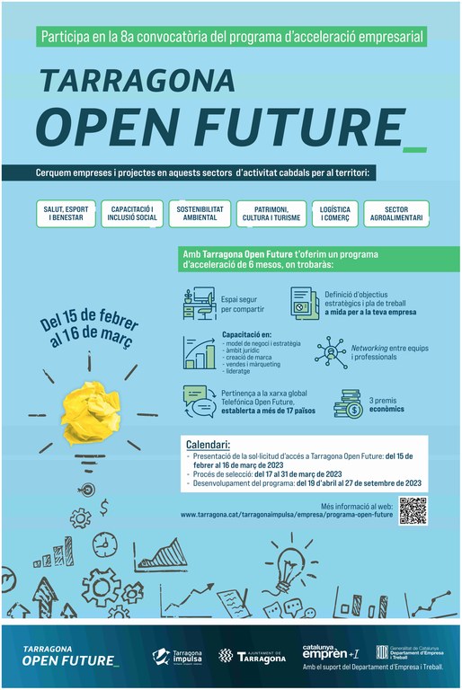 Les persones emprenedores que desitgin participar en la vuitena edició del programa d’acceleració empresarial Tarragona Open Future poden presentar les seves candidatures fins al pròxim 16 de març. Es tracta d’una iniciativa que forma part de la plataforma global Telefónica Open Future i que compta amb la col·laboració de l’Ajuntament de Tarragona a través de Tarragona Impulsa, des d’on s’organitza i es desenvolupa el procés d’acceleració.
