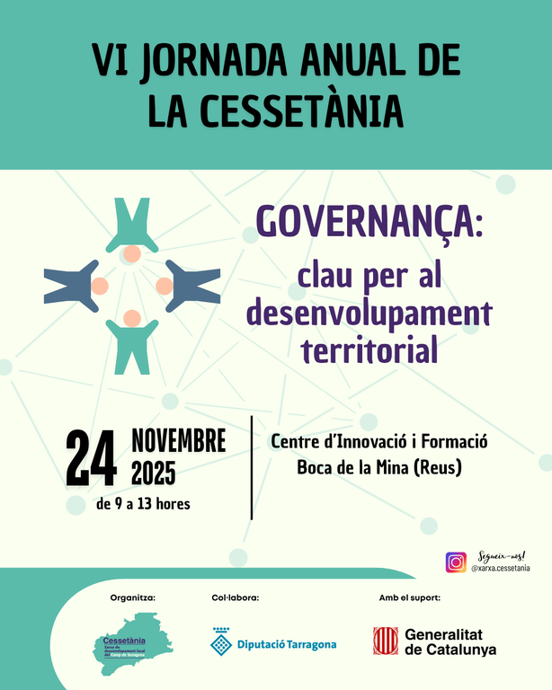 Tarragona Impulsa participarà en la 6a Jornada Anual de La Xarxa Cessetània, organisme (del qual és membre l'Ajuntament de Tarragona) de desenvolupament econòmic local del Camp de Tarragona. En aquesta reunió, diferents de les principals agents i entitats de la demarcació debatran com la governança col·laborativa i la innovació social poden esdevenir eines per donar resposta als complexos reptes inherents en les societats actuals. La trobada se celebrarà dilluns vinent, 24 de novembre a Reus, al Centre de formació Boca de la Mina de la Diputació de Tarragona, de 9 a 13 h.