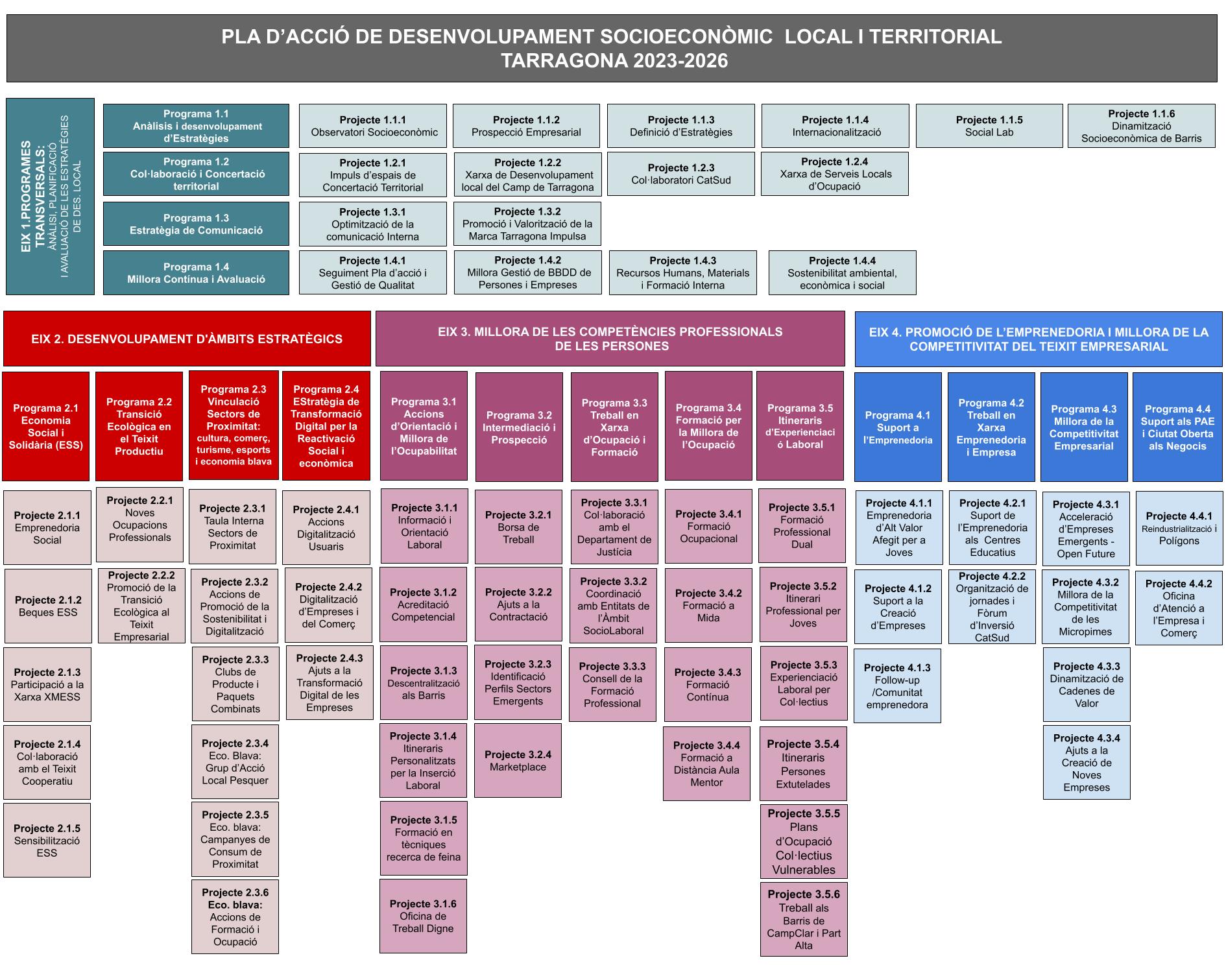 A continuació resumim com s’estructuren els eixos, programes i projectes del Pla: