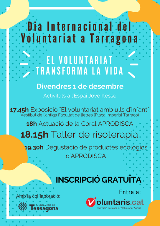 Un any més la FCVS, amb la col·laboració de l'Ajuntament de Tarragona, es mobilitza per celebrar el Dia Internacional del Voluntariat i posar en valor la tasca transformadora que duen a terme les entitats i les persones voluntàries.